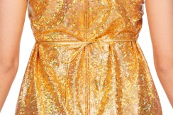 Dieses glänzende Kleid aus gold-gitzerndem Holografiestoff ist ein Klasse Basic für alle Tage. Es wird im Rücken mit einem Bändchen gestrafft, für einen perfekten Sitz. Garantiert ein Hingucker!